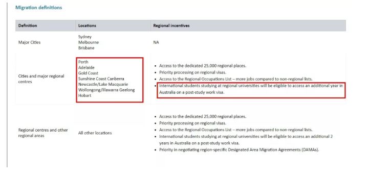 1. 西澳的珀斯(Perth)和昆士兰的黄金海岸(Gold Coast)在新政实施后,将划归为偏远地区