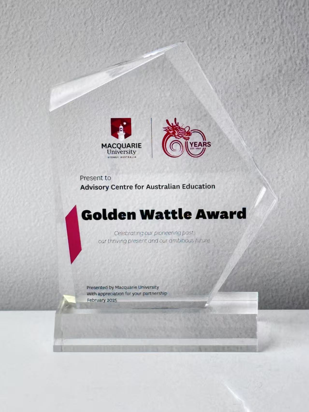 广而告之,ACAE获得了麦考瑞大学颁发的"金合欢奖(Golden Wattle Award)"。这一奖项是对ACAE多年来为数以万计的留学生们提供优质服务的最大肯定!