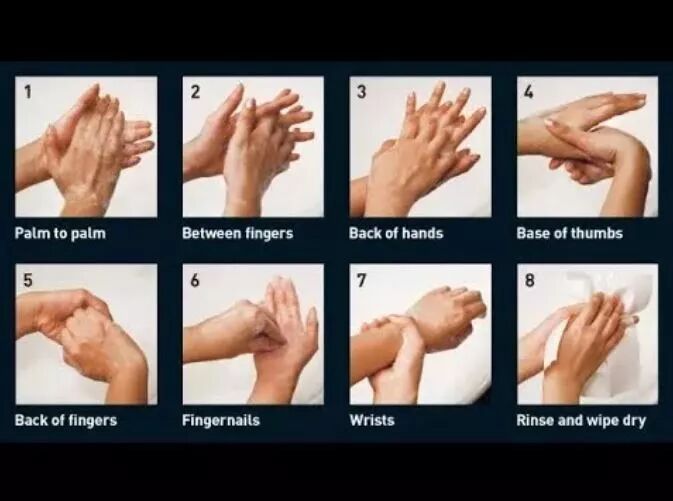 洗手的时间一定要足够,不然无法将病毒完全杀死。可以参照以下的洗手步骤图,更有效地隔离病毒: