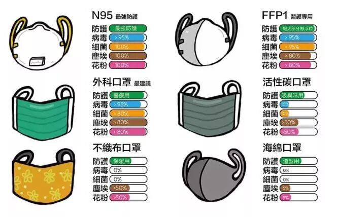 N95或KN95口罩或者医用外科口罩应该选购口罩时的首选,因能有效隔离病毒。