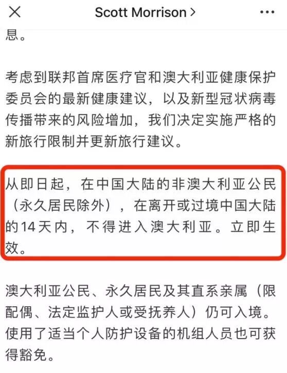 我们先看一下澳洲总理Scott Morrison上周发布的官方微信: