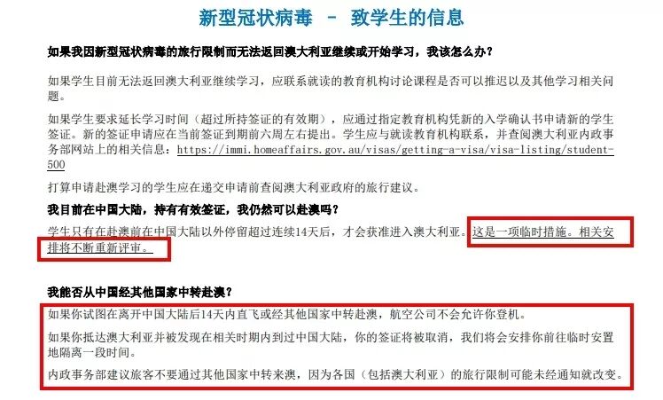 原定前往澳洲的同学需要再调整个人行程。