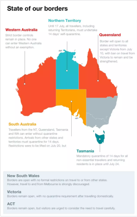 目前澳洲许多州都关闭边境,为的是防止新冠疫情持续扩散。