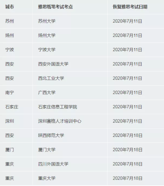 从7月11日开始逐步恢复12个考点的各类雅思笔试