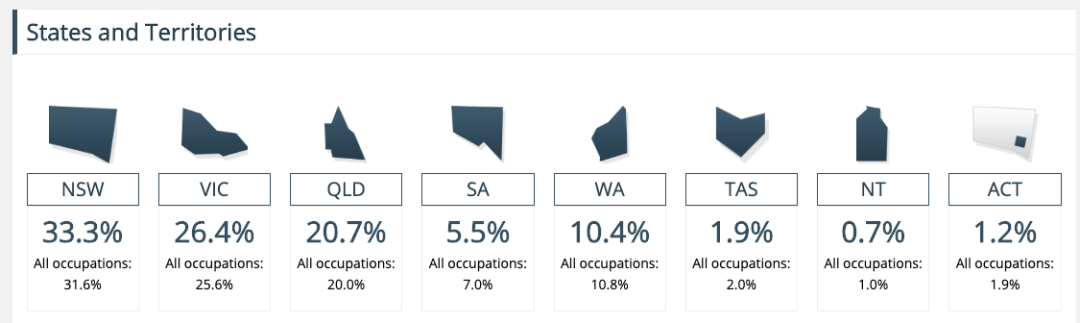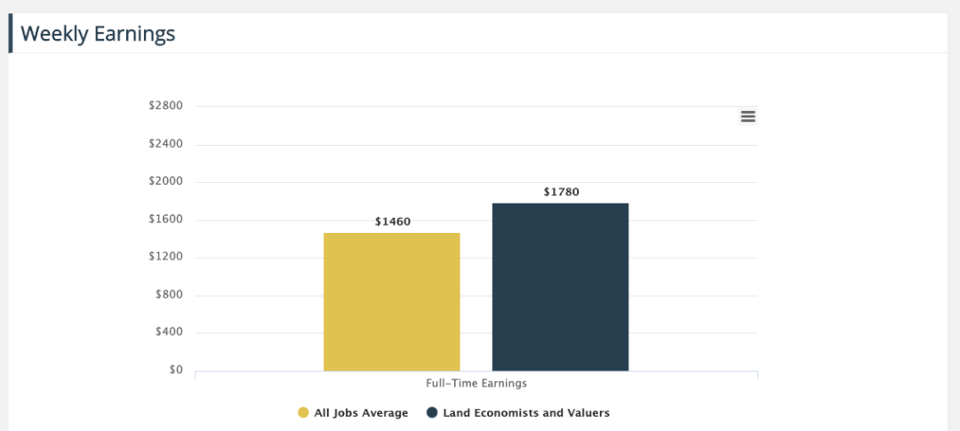 该产业在澳洲也是相当吃香,其工资远远高于平均工资。上图所示,土地经济师和房地产估价师的平均周薪收入约为澳元1780。如此类推,年薪收入约为澳元85440。