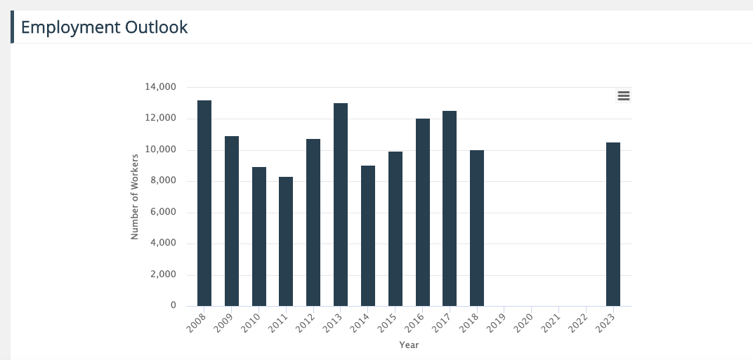 来看看下列澳大利亚政府对于房地产估价人才的需求(数据来自joboutlook.gov.au)。