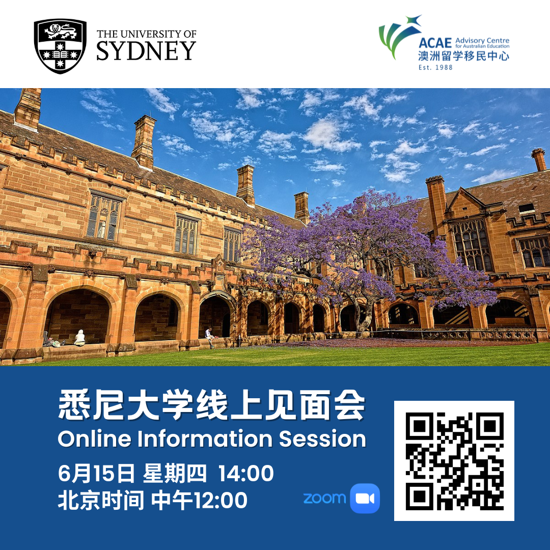 这次活动将为你们带来丰富的内容和宝贵的信息!你将有机会与悉尼大学的招生官互动,与大学专家进行问答交流,获取最新的课程信息、申请流程、入学要求和独家学生服务。学校代表将解答你们的疑问,为你们提供专业指导和个性化建议唷!