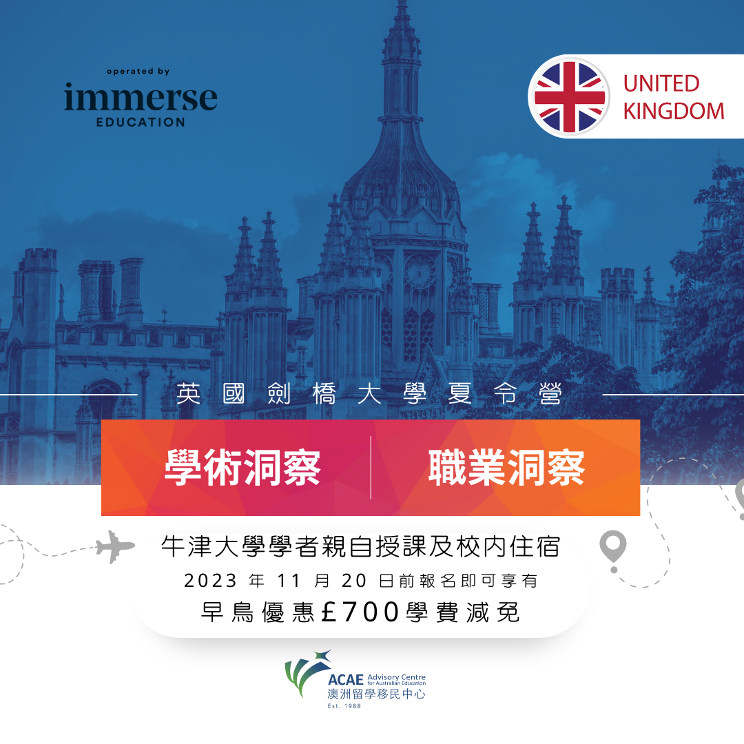 即日起通过ACAE注册游学,可享受£200学费减免,以及£500英镑早鸟折扣优惠(2023 年 11 月 20 日之前报名)。这是一次难忘的学习和成长之旅,一生中难得的机会。选择牛津和剑桥,选择改变你的未来。