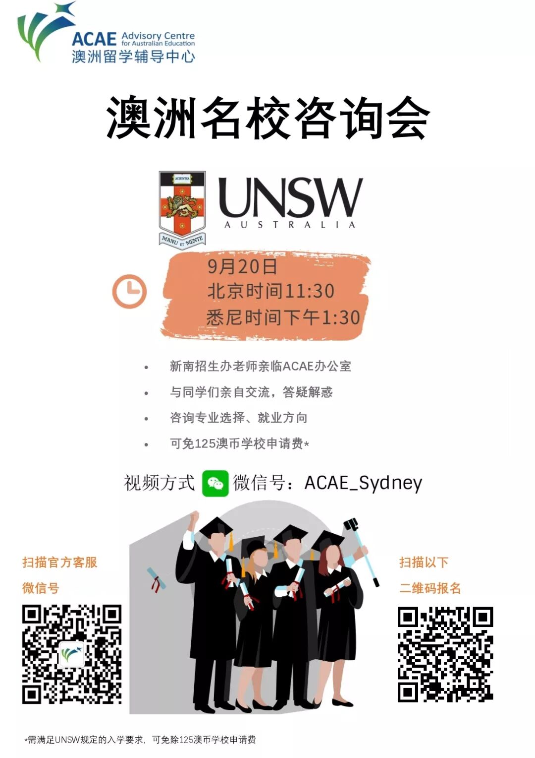 面试会当天新南威尔士大学会派招生处代表莅临ACAE办公室为各位同学解答问题,以及在选专业选课和就业问题上给予最专业的建议。