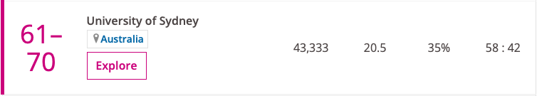 而悉尼大学不仅在泰晤士高等教育的世界大学声誉排名表现出色,在“2020年QS世界大学排名”中,悉尼大学名列全球第42位,新南威尔士州第1位。