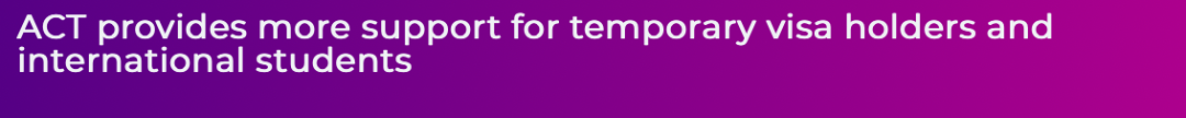 ACT堪培拉政府近日公布推出一系列纾困方案来更近一步协助国际学生。这笔高达45万澳元的资金将帮助堪培拉地区的国际学生用来支付紧急和迫切情况下的生活费用。来自ACT政府的慷慨资助将意味着我们的留学生能够交上房租、购买食物,这样他们就可以专注于做他们应该做的事情 — 接受世界一流的教育。