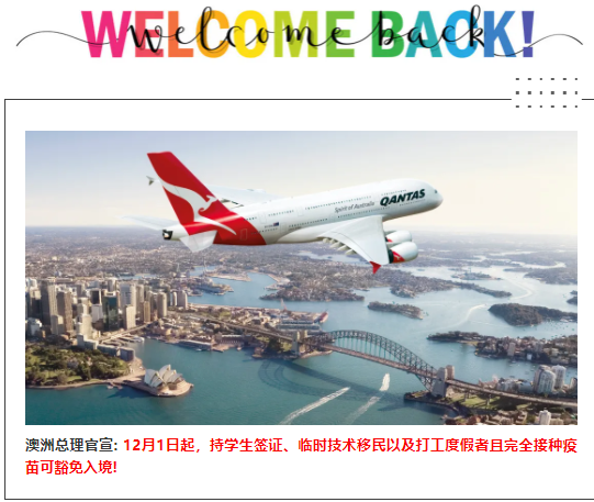 澳洲总理官宣: 12月1日起,持学生签证、临时技术移民以及打工度假者且完全接种疫苗可豁免入境!