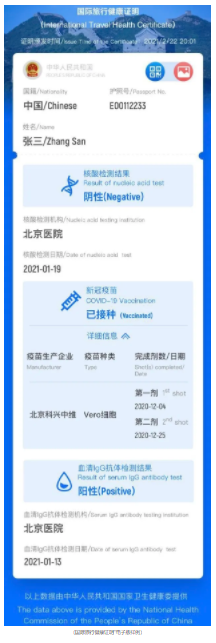 点击“查看及出示国际旅行健康证明”