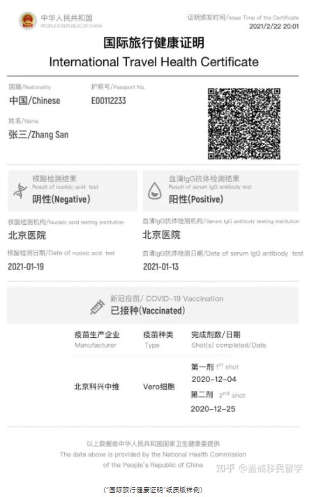 国际疫苗证书