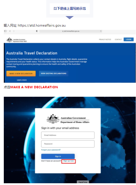 • 遵守入境澳大利亚的所有其他条件,包括在出发前至少72小时填写一份澳大利亚旅行声明表 (Australia Travel Declatation)。