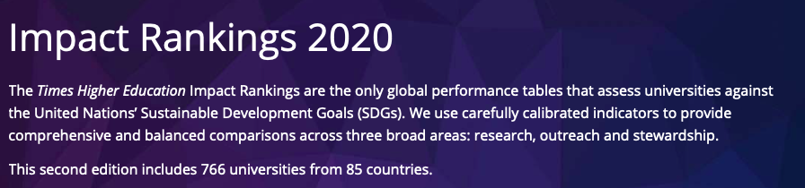 此榜单去年是由泰晤士TIMES发起,根据联合国可17项持续发展目标( UN Sustainable Development Goals) 评估大学对于社会产生的影响力。